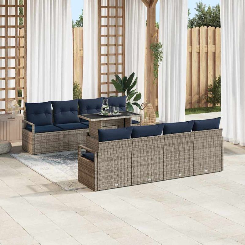 Градински Софа Комплект 7 pcs Сив и тъмен син полиратан