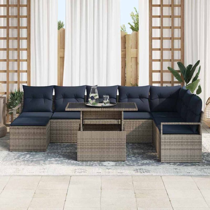 Градински Софа Комплект с възглавница 9 pcs сиво и нейви синьо