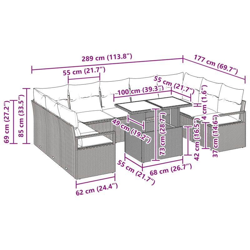 Начало Дом и градина Мебели Външни мебели Външно обзавеждане Градински дивани Градински Софа Комплект 10 pcs Сив и тъмен син Полиратан
