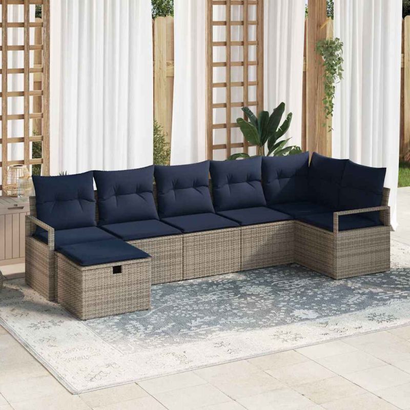 Комплект дивани с възглавница 7 pcs Сив и тъмносин полиратан