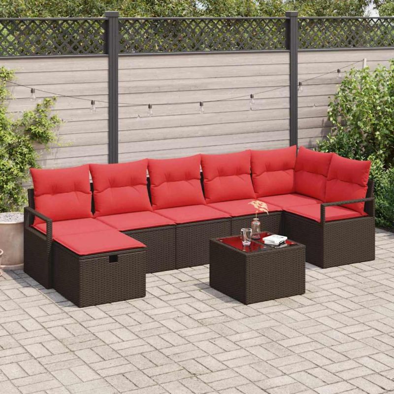 Комплект дивани с възглавница Кафяво и червено полиратан