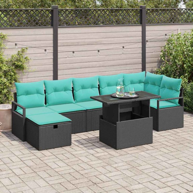 Градински Софа Комплект с възглавница 8 pcs Черно Полиратан