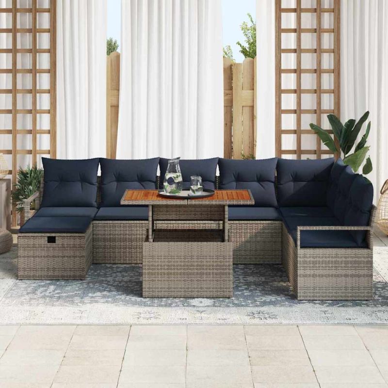 Начало Дом и градина Мебели Външни мебели Комплекти градински мебели Градински Софа Комплект с възглавница 9 pcs Сив полиратан