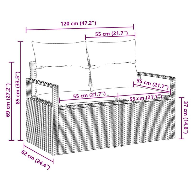 Градински диван с възглавница 120 x 62 x 69 см полиратан