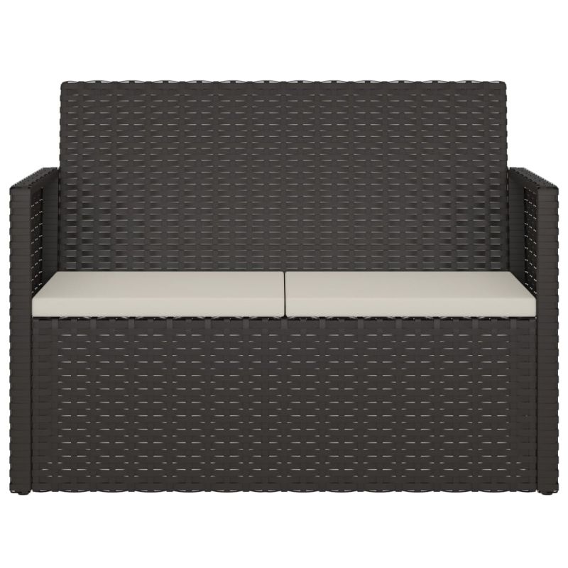 Градинска пейка с възглавници, черна, 105 см, полиратан