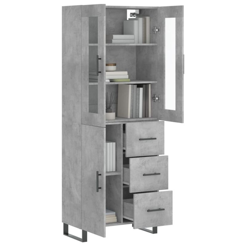 Висок шкаф, бетонно сив, 69,5x34x180 см, инженерно дърво