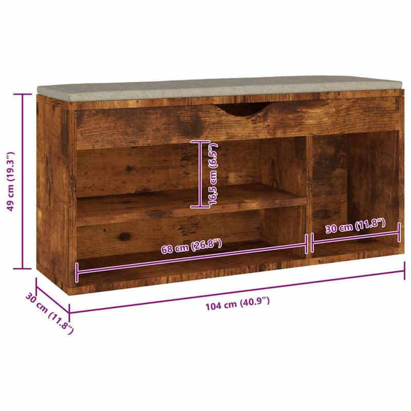 Пейка за обувки, опушен дъб, 104x30x49 см, инженерно дърво