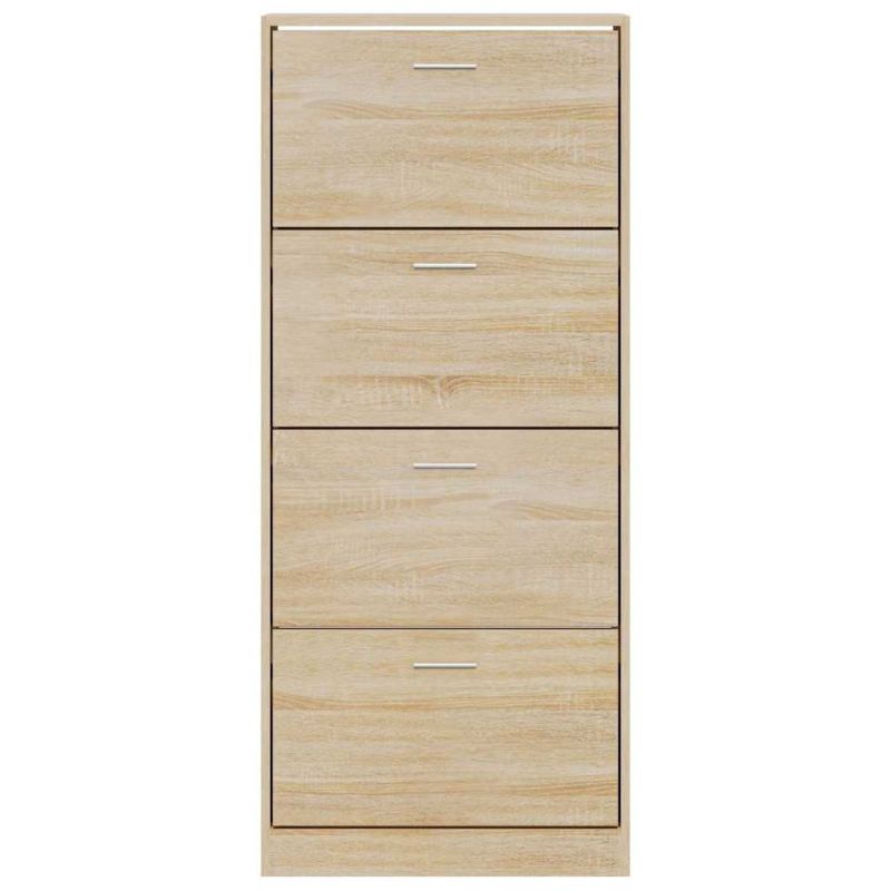 Този шкаф за обувки с модерен и стилен дизайн е отлична мебел за организирано съхранение на вашите обувки. Подходящ е за антре, фоайе, хол, спалня и други места, където желаете да го поставите. Издържлив материал: Инженерната дървесина е с изключително качество с гладка повърхност и също така се отличава със здравина, стабилност и устойчивост на влага.Достатъчно място за съхранение: Тази етажерка за обувки разполага с 4 чекмеджета, осигуряващи достатъчно място, където да държите обувките си подръка и добре подредени.Дизайн с падащо чекмедже: Със своя дизайн с падащо чекмедже този шкаф за обувки се отваря и затваря лесно. Забележка:Всеки продукт се доставя с ръководство за сглобяване в кашона за лесно сглобяване. Внимание:За да се предотврати преобръщане, този продукт трябва да се използва с предоставената приставка за стена