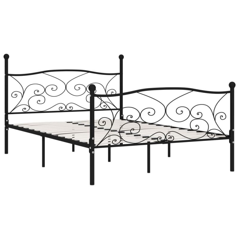 Рамка за легло с ламелна основа, черна, метал, 140x200 см