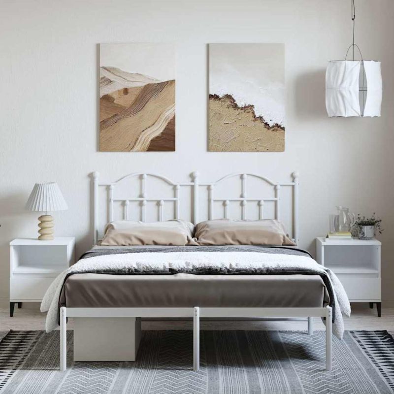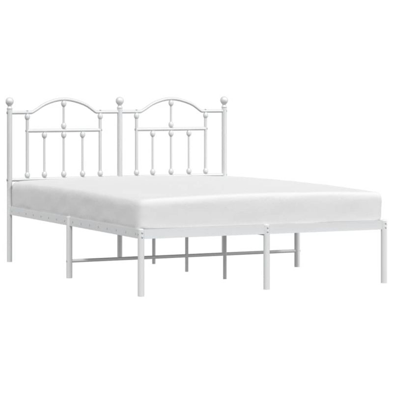 Метална рамка за легло с горна табла, бяла, 150x200 см