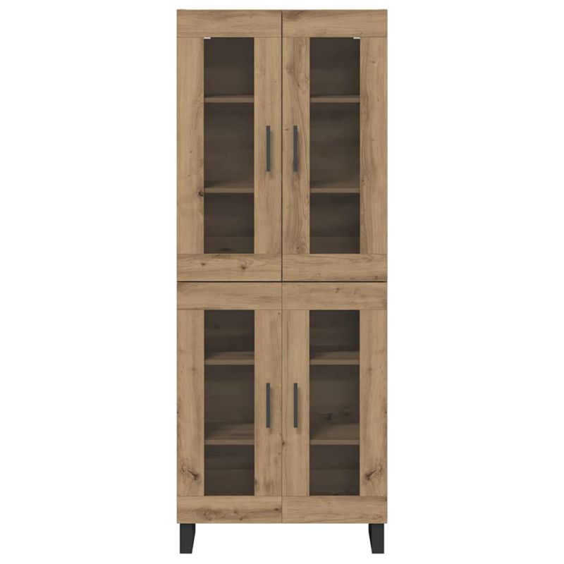 Висок шкаф 2 pcs Дъб Инженерна дървесина и стъкло