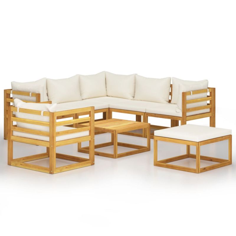 Градински комплект с кремави възглавници, 8 части, акация масив