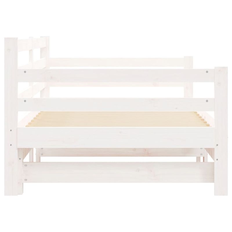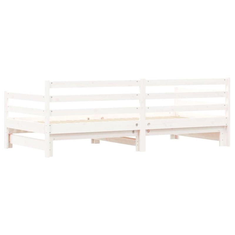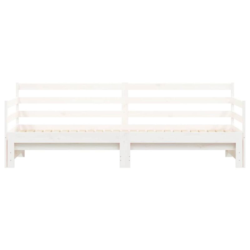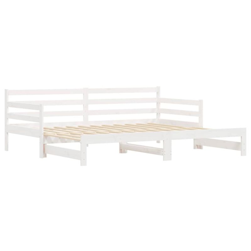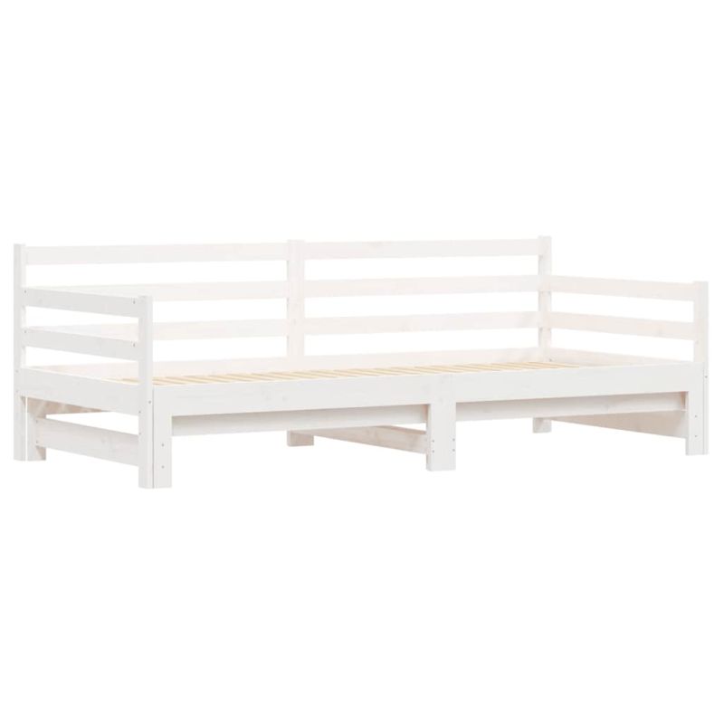 Това канапе 2-в-1 с изтеглящо разтегателно легло, което служи едновременно като диван и легло, е практично и атрактивно допълнение към вашата всекидневна или спалня. Масивна борова дървесина: Масивното борово дърво е красив естествен материал. Боровата дървесина е с продълговати шарки, а чеповете придават на материала характерния му рустик вид. Леглото за гости е изработено от масивна борова дървесина за стабилност и издръжливост.Функционална мебел: Канапето функционира като диван през деня и лесно се превръща в двойно легло през нощта чрез издърпване на механизма за изтеглящо разтегателно легло, осигурявайки удобно решение за настаняване на гости и увеличаване на пространството.Допълнително място за съхранение: Има допълнително пространство под леглото, което ви позволява да поставите чекмеджета или кутии за съхранение за вашите дрехи, чорапи, играчки, възглавници и др. Добре е да се знае:Тази рамка за легло разполага с дизайн с ламели и включва ламелите.Доставката съдържа само рамка за канапе. Матраците не са включени. Можете да проверите в нашия магазин за подходящи матраци.