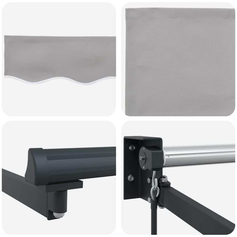 Този модерен прибираем сенник е перфектен баланс между стил и полезност, осигурявайки сянка в градината или на терасата. Неговият минималистичен вид се вписва идеално в почти всяко пространство, а за любителите на открито, той предлага практично решение за трансформиране на откритите площи в комфортно и сенчесто място. Материали: Изработен е от здрав полиестер и алуминий, за да осигури дълготрайност. Полиестерът е устойчив на износване и UV лъчи, а алуминият е лек и здрав, което осигурява надеждност и качество. Включени компоненти: Пакетът включва рамката на сенника и полиестерния покрив. Всеки елемент е проектиран да е лесен за инсталация. Полиестерът осигурява сянка, а рамката е стабилна. Характеристики: С прибираемия механизъм, можете лесно да настроите сенника според нуждите си. Устойчив на избледняване и атмосферни влияния, той ще издържи на всякакви условия, а светло сивият цвят допълва вашето открито пространство. Препоръчителни употреби: Идеален за тераси, палуби или градински пространства, предлага гъвкава сянка. Подходящ е за социални събирания, отпускащи моменти на открито или просто почивка от слънцето. Лекотата на настройването му го прави ценен помощник за всяко открито събитие. Грижа и поддръжка: Лесно е да се поддържа в отлично състояние; редовното почистване на тъканта е достатъчно. Проверявайте ръчно механизма, за да сте сигурни, че всичко работи плавно. Покрай неблагоприятни условия, покритията помагат за удължаването на живота на сенника. Опасност! Силен отскок при отваряне. НЕ сваляйте това въже, освен ако не сте приключили с всички стъпки на сглобяване. Всички болтове трябва да са затегнати и елементът да е прикрепен към стената! Предупреждение! Внимавайте, когато разхлабвате рамената, защото те са под напрежение! Внезапното освобождаване на рамо на сгъваема тента може да причини нараняване. Внимание: Инструкциите за ползване трябва да бъдат прочетени преди употребата на продукта. Предупреждение: Работата в студени условия може да повреди продукта. Външна употреба в сгради и други строителни обекти.