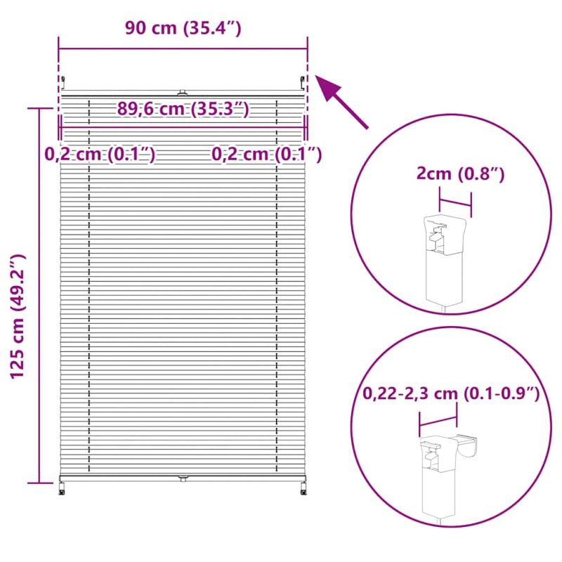 Тази плисирана щора е идеална за защита от слънце и външно наблюдение и ще задоволи всички ваши потребности. Идеална е за вилата, всекидневната, спалнята, банята, кухнята, трапезарията, офиса, заседателната зала, приемната и др.Щората има модерен дизайн, който ще бъде чудесно допълнение към декорацията на вашата стая. Плисираната щора се монтира с помощта на затягащ държач, без да се пробива стената. Тя е регулируема откъм горния край както и откъм дъното, просто издърпайте въжето и преценете каква дължина ви е необходима.Предлага се в различни размери:40 x 100, 50 x 100, 60 x 100, 70 x 100, 80 x 100, 90 x 100, 100 x 100, 110 x 10040 x 125, 50 x 125, 60 x 125, 70 x 125, 80 x 125, 90 x 125, 100 x 125, 110 x 12540 x 150, 50 x 150, 60 x 150, 70 x 150, 80 x 150, 90 x 150, 100 x 150, 110 x 15040 x 200, 50 x 200, 60 x 200, 70 x 200, 80 x 200, 90 x 200, 100 x 200, 110 x 200.Може да намерите тази, която ще подхожда най-добре на вашето оформление. ВНИМАНИЕ! Малките деца могат да бъдат удушени от примки в дърпащи въжета, вериги, ленти и вътрешния кабел, който управлява този продукт. За да избегнете удушаване и оплитане, дръжте кабелите далеч от обсега на малки деца. Шнурите могат да се увият около врата на детето. Преместете леглата, креватчетата и мебелите далеч от въжетата за покриване на прозорци. Не завързвайте кабелите заедно. Уверете се, че кабелите не се усукват и образуват примка. ВНИМАНИЕ! Децата може да се задушат, ако това предпазно устройство не е инсталирано. Винаги използвайте това устройство, за да задържате шнуровете или верижките на място, недостъпно за деца. GPSR