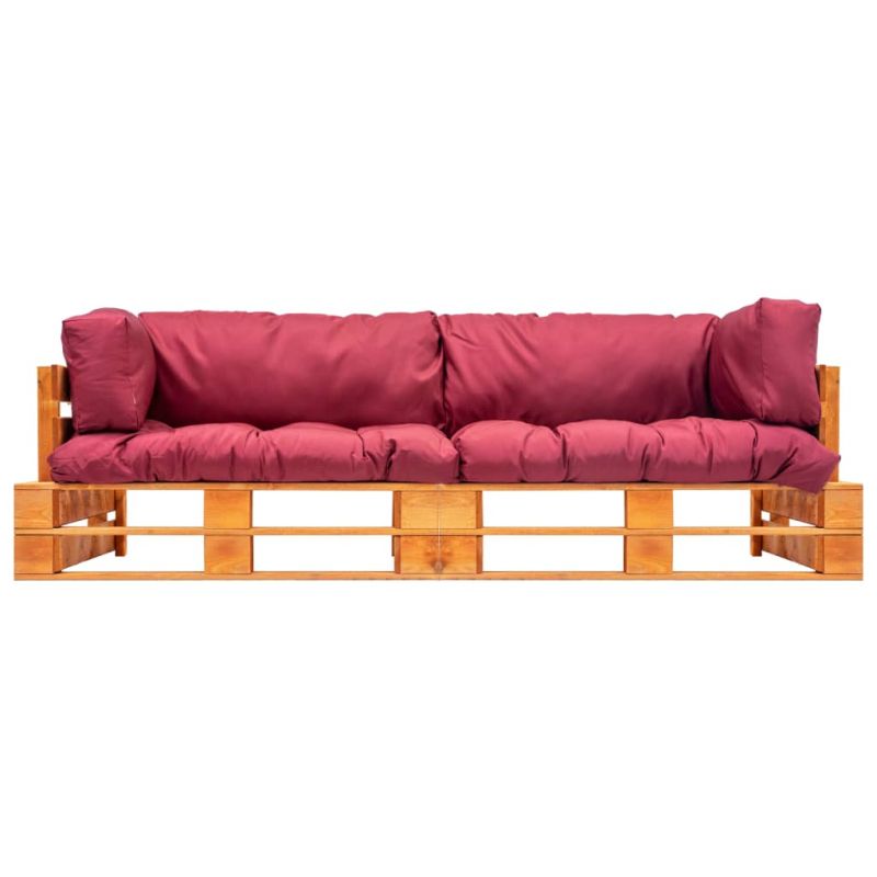 Нашият градински диван от палети ще бъде идеален избор за вас да се отпуснете и да се насладите на времето, да подремнете или да поговорите със семейството или приятелите си. С непреходен палетен дизайн дървеният лаундж комплект добавя нотка на рустик чар към вашия вътрешен двор, градина или всекидневна. Изработен от импрегнирана борова дървесина, външният лаундж комплект е издръжлив и устойчив на атмосферни влияния. Този комплект патио дивани се отличава със здрава конструкция и изисква малко поддръжка. Доставян с меки, дебело подплатени възглавници, нашият лаундж комплект мебели ще осигури максимален комфорт. Доставката включва два 2-местни дивана с подвижни възглавници за седалка и облегалка. Комплектът градински мебели се сглобява лесно. Моля, имайте предвид, че дървото е естествен материал и може да има несъвършенства.
