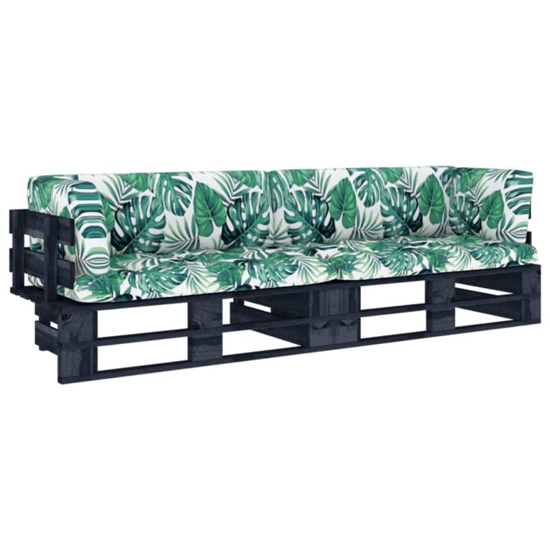 2-местен палетен диван с възглавници бор с черна импрегнация