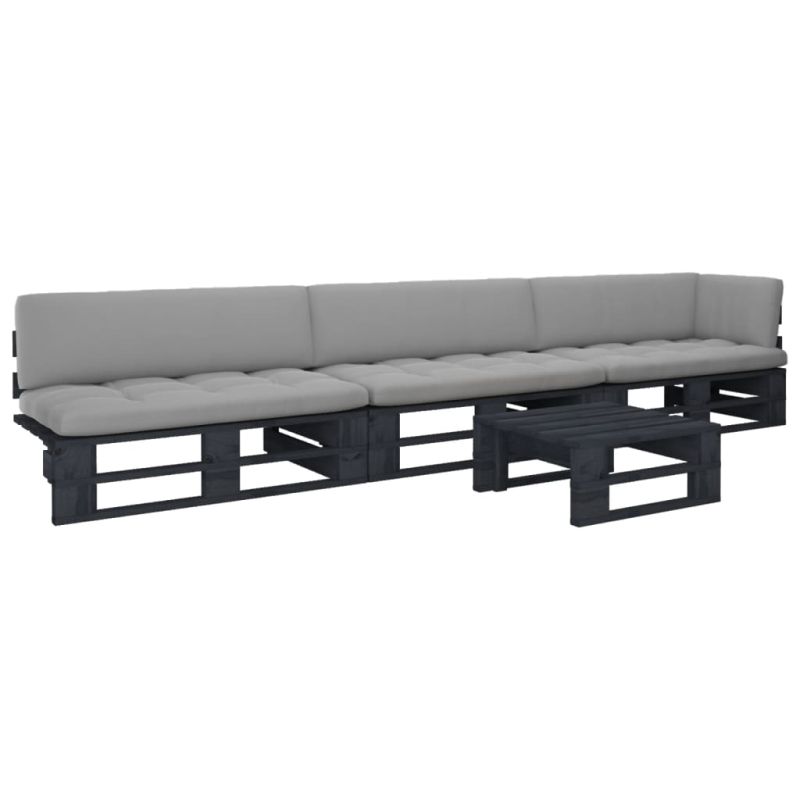 Палетен комплект с възглавници 4 части черен импрегниран бор