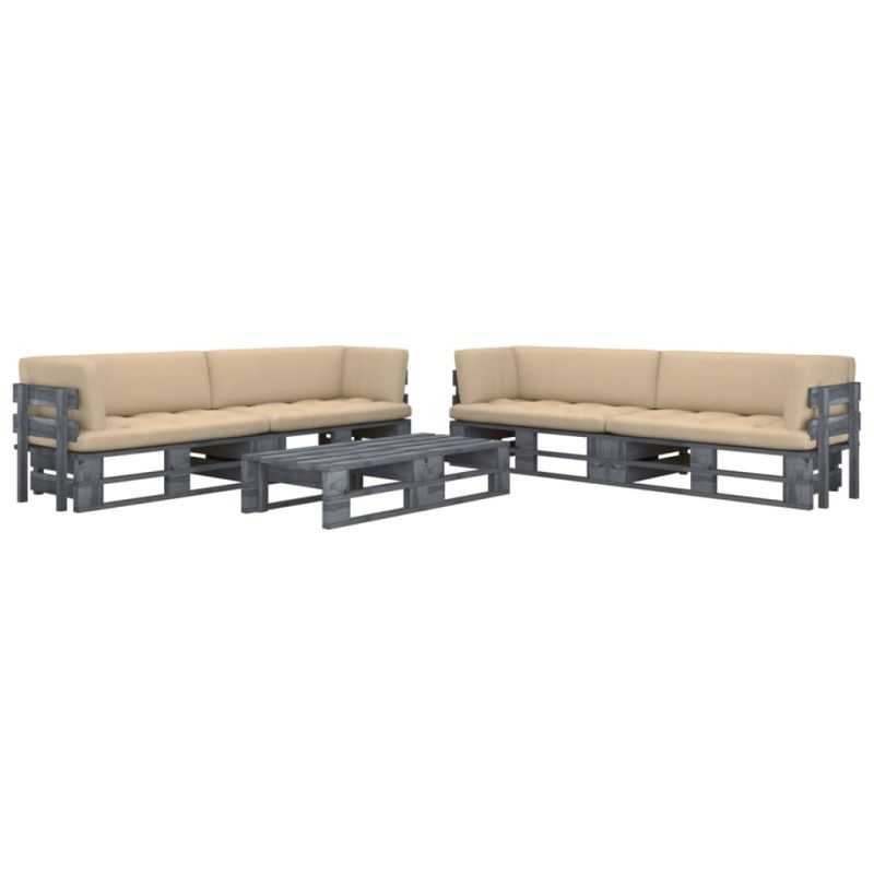 Палетен комплект с възглавници 6 части бор със сива импрегнация