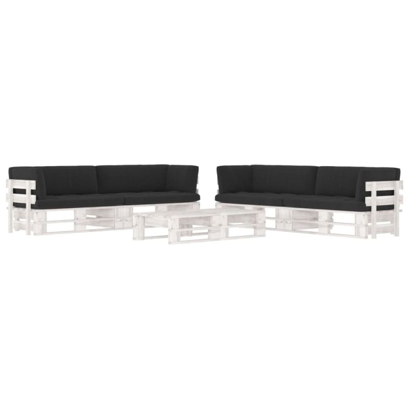 Палетен комплект с възглавници 6 части бор с бяла импрегнация