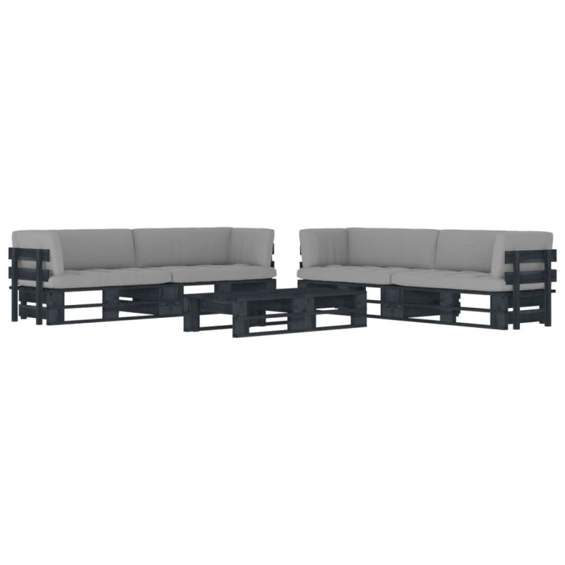 Палетен комплект с възглавници 6 части бор с черна импрегнация