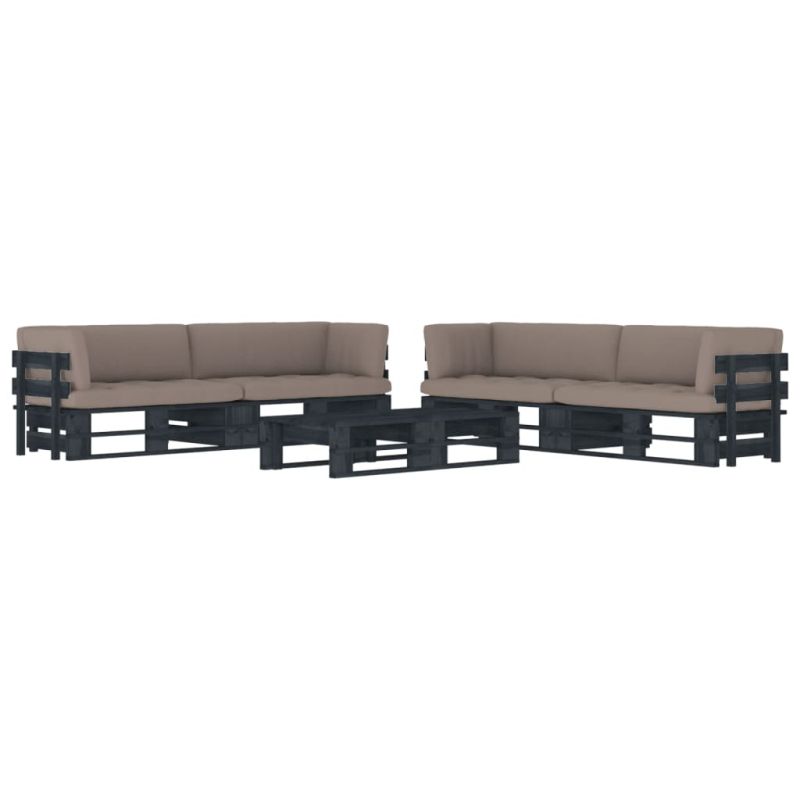 Палетен комплект с възглавници 6 части бор с черна импрегнация