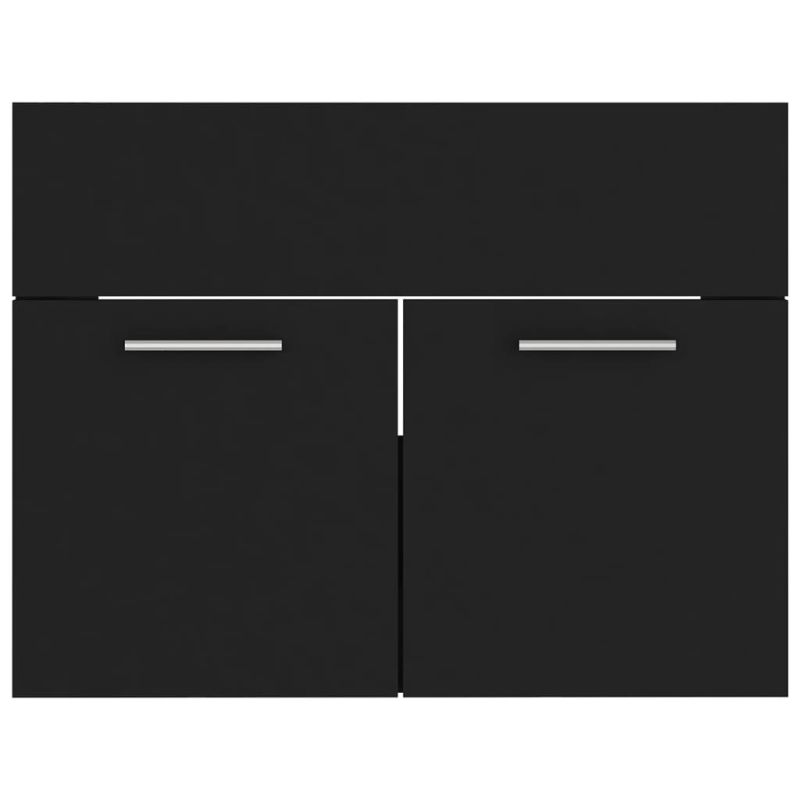 Шкаф за баня с вградена мивка, черен, ПДЧ