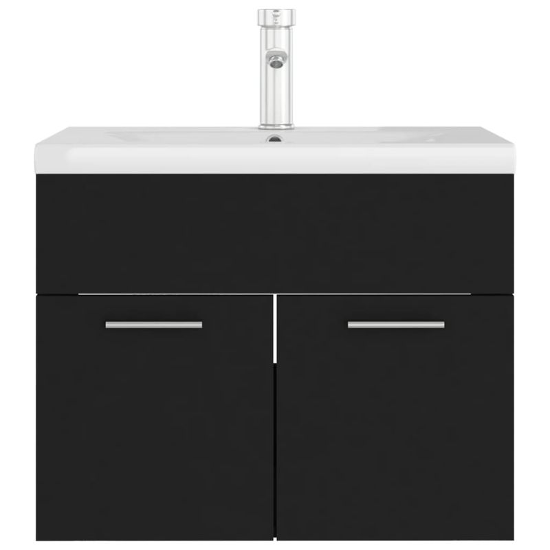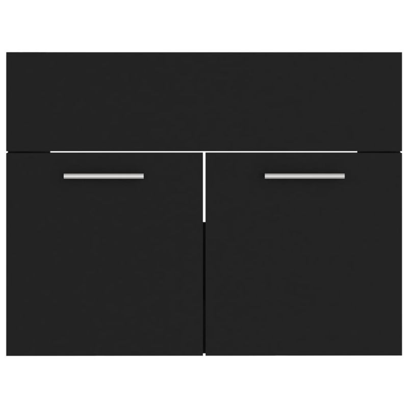 Шкаф за баня с вградена мивка, черен, ПДЧ