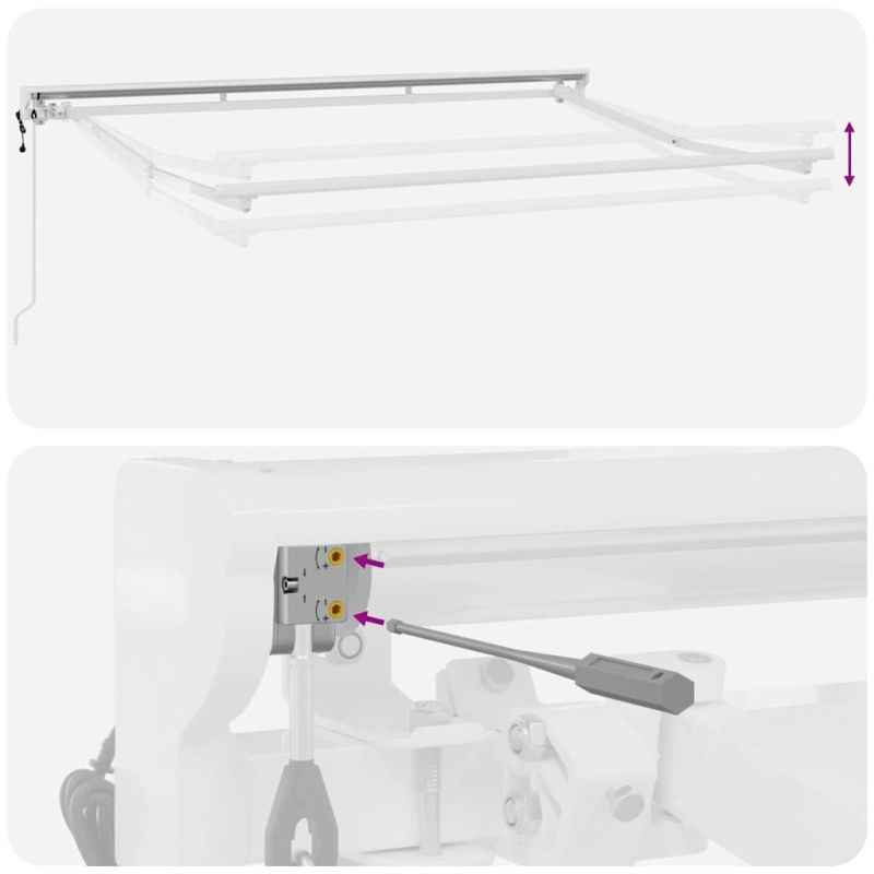 Този прибираем сенник е чудесен за градини и тераси. Може лесно да се разширява или прибира, за да регулира слънчевата светлина и защитата, когато е нужно. Идеален е за хапване на открито, релаксация или просто за посрещане на гости, създава комфортна среда, като предлага защита от слънце и леки дъждове. Сенникът е супер полезно допълнение, за да се наслаждаваш на откритите пространства през цялата година. Устойчиви материали: Изработен е от полиестер с PU покритие, който издържа на всякакво време. Рамката, прахово боядисана от стомана и алуминий, осигурява стабилност за ежедневно ползване навън. Регулируема работа: Сенникът може да се контролира с ръчна ръкохватка или дистанционно, позволявайки лесно разширение или прибиране в зависимост от нуждата от сянка. Структура полу-касета: С прибиращи се рамене и алуминиев вал, който предлага гладко разширение и прибиране, и защитава плата, когато не се използва. Открита сянка: Подходящ е за дворове, градини и тераси, прибираемата функция позволява регулиране на зоната сянка според условията на слънчевата светлина. Изисквания за монтаж: Сенникът е проектиран за монтаж на стена. Нужни са основни инструменти като отвертка, бормашина и клещи. Следвай инструкциите за правилно сглобяване и монтаж. Опасност! Силен отскок при отваряне. НЕ сваляйте това въже, освен ако не сте приключили с всички стъпки на сглобяване. Всички болтове трябва да са затегнати и елементът да е прикрепен към стената! Предупреждение! Внимавайте, когато разхлабвате рамената, защото те са под напрежение! Внезапното освобождаване на рамо на сгъваема тента може да причини нараняване. Внимание: Инструкциите за ползване трябва да бъдат прочетени преди употребата на продукта. Предупреждение: Работата в студени условия може да повреди продукта. Външна употреба в сгради и други строителни обекти. Не позволявайте на деца да си играят с управляващото устройство на щората. Дръжте дистанционното управление далеч от деца.
