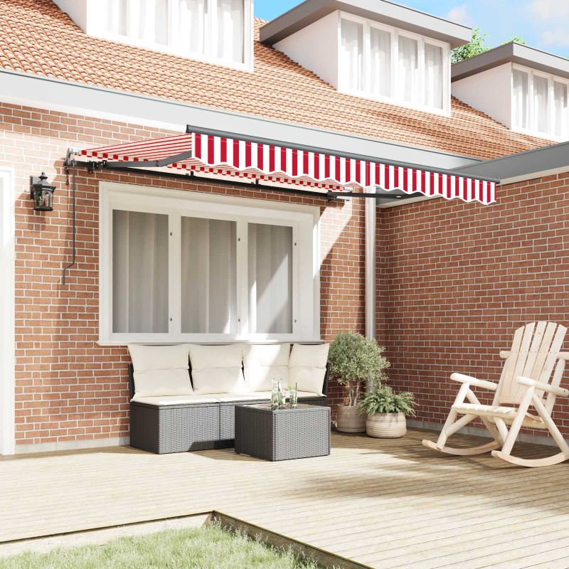 Този модерен сгъваем сенник е направен за открити пространства, предлагащ стил и практичност. Има елегантен и гладък дизайн с райета, който придава живописен вид, докато осигурява сянка от силното слънце през лятото. Европейски вдъхновен стил Стилен и модерен дизайн с чисти линии, който идеално се вписва в терасата или двора. Прибираемият му механизъм го прави перфектен за тези, които искат удобство и стил. Здрави материали Издръжлива тъкан, устойчива на UV лъчи и вода. Алуминиевата рамка е здрава и лека, правейки монтажа лесен. Гъвкава функционалност Може да се разтяга напълно или да се прибира, за да спестява пространство. Тази функция е супер удобна, когато искате да контролирате количеството слънчева светлина. Лесна поддръжка Само бързо избърсване с мокра кърпа е нужно, за да остане в отлично състояние. Проектиран е да устои на времето, осигурявайки дълготрайност с минимални усилия. Адаптивен в различни настройки Подходящ е за градини, тераси или около басейн. Осигурява сянка, идеална за летни партита или релаксиращи кътчета навън. Опасност! Силен отскок при отваряне. НЕ сваляйте това въже, освен ако не сте приключили с всички стъпки на сглобяване. Всички болтове трябва да са затегнати и елементът да е прикрепен към стената! Предупреждение! Внимавайте, когато разхлабвате рамената, защото те са под напрежение! Внезапното освобождаване на рамо на сгъваема тента може да причини нараняване. Внимание: Инструкциите за ползване трябва да бъдат прочетени преди употребата на продукта. Предупреждение: Работата в студени условия може да повреди продукта. Външна употреба в сгради и други строителни обекти. Не позволявайте на деца да си играят с управляващото устройство на щората. Дръжте дистанционното управление далеч от деца.