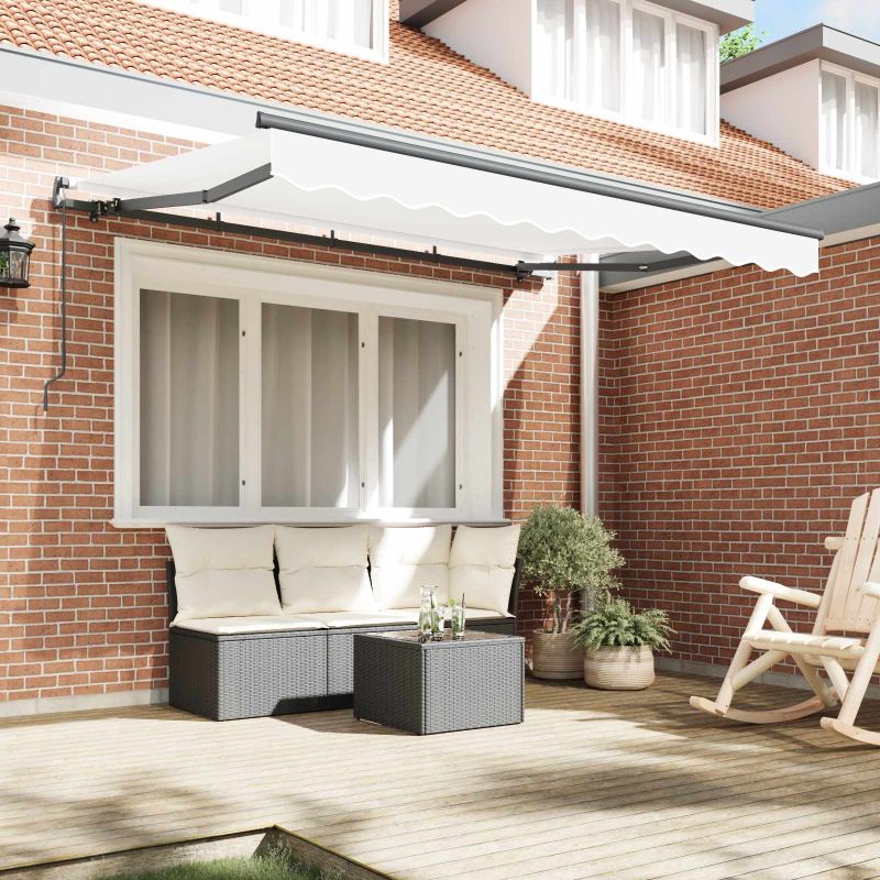 Този модерен сгъваем сенник е направен за открити пространства, предлагащ стил и практичност. Има елегантен и гладък дизайн с райета, който придава живописен вид, докато осигурява сянка от силното слънце през лятото. Европейски вдъхновен стил Стилен и модерен дизайн с чисти линии, който идеално се вписва в терасата или двора. Прибираемият му механизъм го прави перфектен за тези, които искат удобство и стил. Здрави материали Издръжлива тъкан, устойчива на UV лъчи и вода. Алуминиевата рамка е здрава и лека, правейки монтажа лесен. Гъвкава функционалност Може да се разтяга напълно или да се прибира, за да спестява пространство. Тази функция е супер удобна, когато искате да контролирате количеството слънчева светлина. Лесна поддръжка Само бързо избърсване с мокра кърпа е нужно, за да остане в отлично състояние. Проектиран е да устои на времето, осигурявайки дълготрайност с минимални усилия. Адаптивен в различни настройки Подходящ е за градини, тераси или около басейн. Осигурява сянка, идеална за летни партита или релаксиращи кътчета навън. Опасност! Силен отскок при отваряне. НЕ сваляйте това въже, освен ако не сте приключили с всички стъпки на сглобяване. Всички болтове трябва да са затегнати и елементът да е прикрепен към стената! Предупреждение! Внимавайте, когато разхлабвате рамената, защото те са под напрежение! Внезапното освобождаване на рамо на сгъваема тента може да причини нараняване. Внимание: Инструкциите за ползване трябва да бъдат прочетени преди употребата на продукта. Предупреждение: Работата в студени условия може да повреди продукта. Външна употреба в сгради и други строителни обекти.