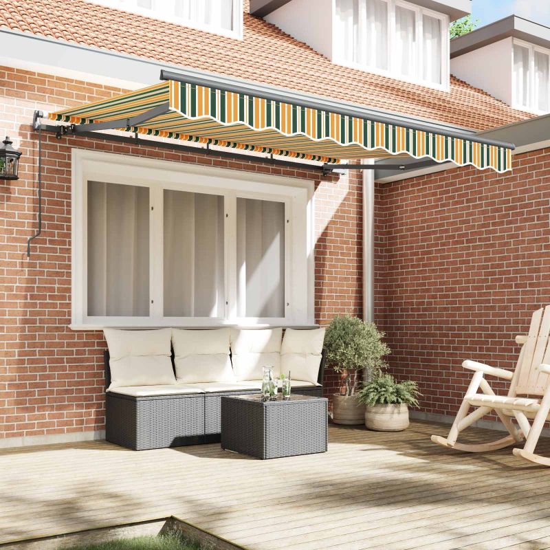 Този модерен сгъваем сенник е направен за открити пространства, предлагащ стил и практичност. Има елегантен и гладък дизайн с райета, който придава живописен вид, докато осигурява сянка от силното слънце през лятото. Европейски вдъхновен стил Стилен и модерен дизайн с чисти линии, който идеално се вписва в терасата или двора. Прибираемият му механизъм го прави перфектен за тези, които искат удобство и стил. Здрави материали Издръжлива тъкан, устойчива на UV лъчи и вода. Алуминиевата рамка е здрава и лека, правейки монтажа лесен. Гъвкава функционалност Може да се разтяга напълно или да се прибира, за да спестява пространство. Тази функция е супер удобна, когато искате да контролирате количеството слънчева светлина. Лесна поддръжка Само бързо избърсване с мокра кърпа е нужно, за да остане в отлично състояние. Проектиран е да устои на времето, осигурявайки дълготрайност с минимални усилия. Адаптивен в различни настройки Подходящ е за градини, тераси или около басейн. Осигурява сянка, идеална за летни партита или релаксиращи кътчета навън.