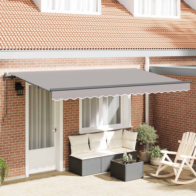 Този модерен сгъваем сенник е направен за открити пространства, предлагащ стил и практичност. Има елегантен и гладък дизайн с райета, който придава живописен вид, докато осигурява сянка от силното слънце през лятото. Европейски вдъхновен стил Стилен и модерен дизайн с чисти линии, който идеално се вписва в терасата или двора. Прибираемият му механизъм го прави перфектен за тези, които искат удобство и стил. Здрави материали Издръжлива тъкан, устойчива на UV лъчи и вода. Алуминиевата рамка е здрава и лека, правейки монтажа лесен. Гъвкава функционалност Може да се разтяга напълно или да се прибира, за да спестява пространство. Тази функция е супер удобна, когато искате да контролирате количеството слънчева светлина. Лесна поддръжка Само бързо избърсване с мокра кърпа е нужно, за да остане в отлично състояние. Проектиран е да устои на времето, осигурявайки дълготрайност с минимални усилия. Адаптивен в различни настройки Подходящ е за градини, тераси или около басейн. Осигурява сянка, идеална за летни партита или релаксиращи кътчета навън. Опасност! Силен отскок при отваряне. НЕ сваляйте това въже, освен ако не сте приключили с всички стъпки на сглобяване. Всички болтове трябва да са затегнати и елементът да е прикрепен към стената! Предупреждение! Внимавайте, когато разхлабвате рамената, защото те са под напрежение! Внезапното освобождаване на рамо на сгъваема тента може да причини нараняване. Внимание: Инструкциите за ползване трябва да бъдат прочетени преди употребата на продукта. Предупреждение: Работата в студени условия може да повреди продукта. Външна употреба в сгради и други строителни обекти. Не позволявайте на деца да си играят с управляващото устройство на щората. Дръжте дистанционното управление далеч от деца.