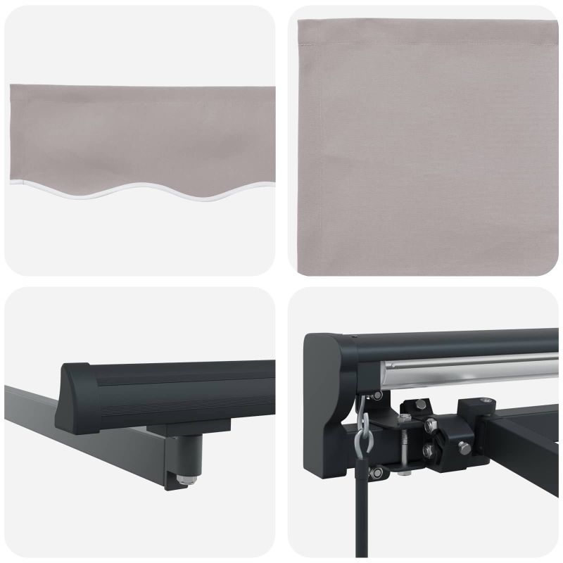 Този прибираем сенник е чудесен за градини и тераси. Може лесно да се разширява или прибира, за да регулира слънчевата светлина и защитата, когато е нужно. Идеален е за хапване на открито, релаксация или просто за посрещане на гости, създава комфортна среда, като предлага защита от слънце и леки дъждове. Сенникът е супер полезно допълнение, за да се наслаждаваш на откритите пространства през цялата година. Устойчиви материали: Изработен е от полиестер с PU покритие, който издържа на всякакво време. Рамката, прахово боядисана от стомана и алуминий, осигурява стабилност за ежедневно ползване навън. Регулируема работа: Сенникът може да се контролира с ръчна ръкохватка или дистанционно, позволявайки лесно разширение или прибиране в зависимост от нуждата от сянка. Структура полу-касета: С прибиращи се рамене и алуминиев вал, който предлага гладко разширение и прибиране, и защитава плата, когато не се използва. Открита сянка: Подходящ е за дворове, градини и тераси, прибираемата функция позволява регулиране на зоната сянка според условията на слънчевата светлина. Изисквания за монтаж: Сенникът е проектиран за монтаж на стена. Нужни са основни инструменти като отвертка, бормашина и клещи. Следвай инструкциите за правилно сглобяване и монтаж.