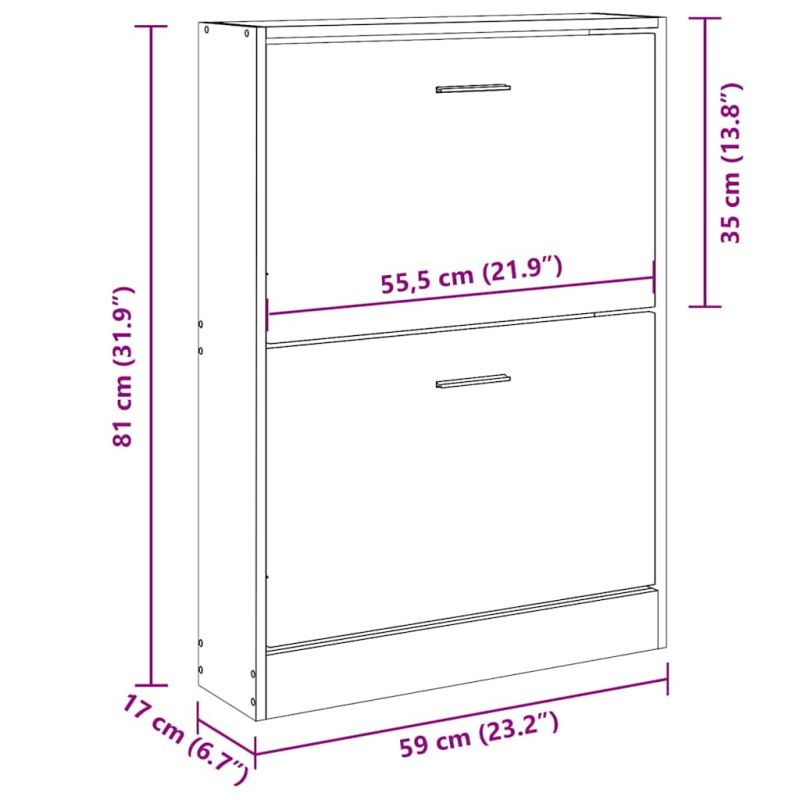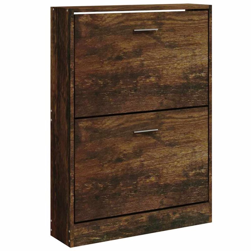 Този шкаф за обувки с модерен и стилен дизайн е отлична мебел за организирано съхранение на вашите обувки. Подходящ е за антре, фоайе, хол, спалня и други места, където желаете да го поставите. Издържлив материал: Инженерната дървесина е с изключително качество с гладка повърхност и също така се отличава със здравина, стабилност и устойчивост на влага.Достатъчно място за съхранение: Тази етажерка за обувки разполага с 2 чекмеджета, осигуряващи достатъчно място, където да държите обувките си подръка и добре подредени.Дизайн с падащо чекмедже: Със своя дизайн с падащо чекмедже този шкаф за обувки се отваря и затваря лесно. Забележка:Всеки продукт се доставя с ръководство за сглобяване в кашона за лесно сглобяване. Внимание:За да се предотврати преобръщане, този продукт трябва да се използва с предоставената приставка за стена