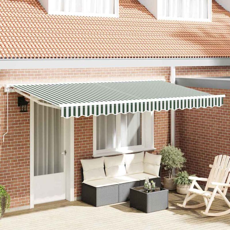 Резервен плат за тента Зелен и бял 380 x 195 см Полиестер
