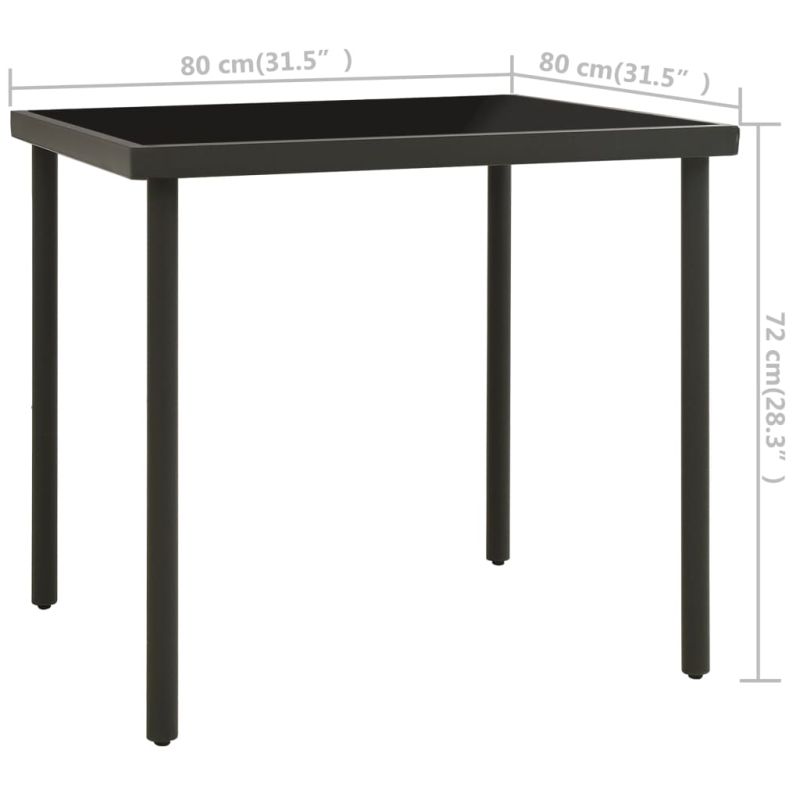 Със стилен дизайн и издръжлива стоманена рамка, този комплект трапезни мебели е перфектен избор за вашето външно жилищно пространство. Семплата елегантност на този трапезен комплект прави ежедневните вечери специални. Този градински трапезен комплект разполага с прахово боядисана стоманена рамка, която прави масата и столовете стабилни и издръжливи. Комфортните трапезни са тапицирани със здрав и лесен за почистване textilene. Забележка: За да удължите живота на вашите градински мебели, ви препоръчваме да ги защитите с водоустойчиво покритие. Максимално 110 кг на седалка.