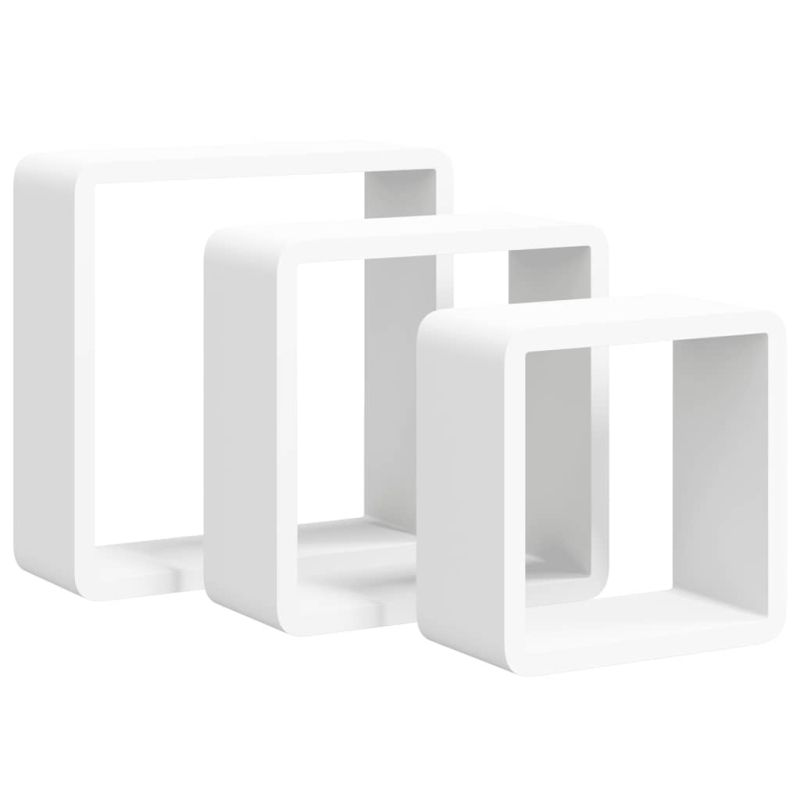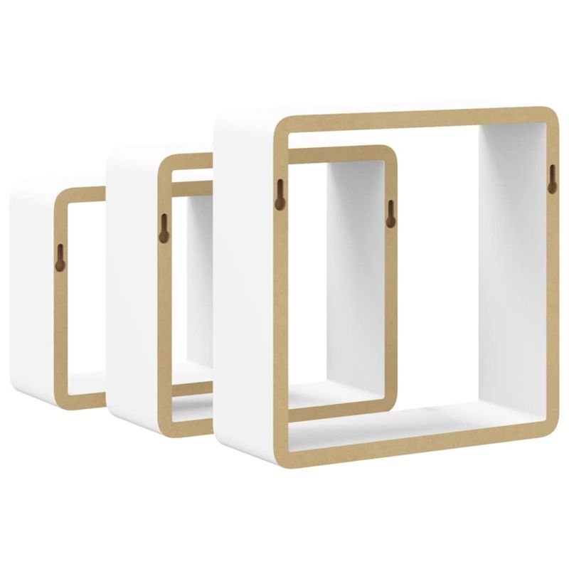 Стенни кубични рафтове, 3 бр, бели, МДФ