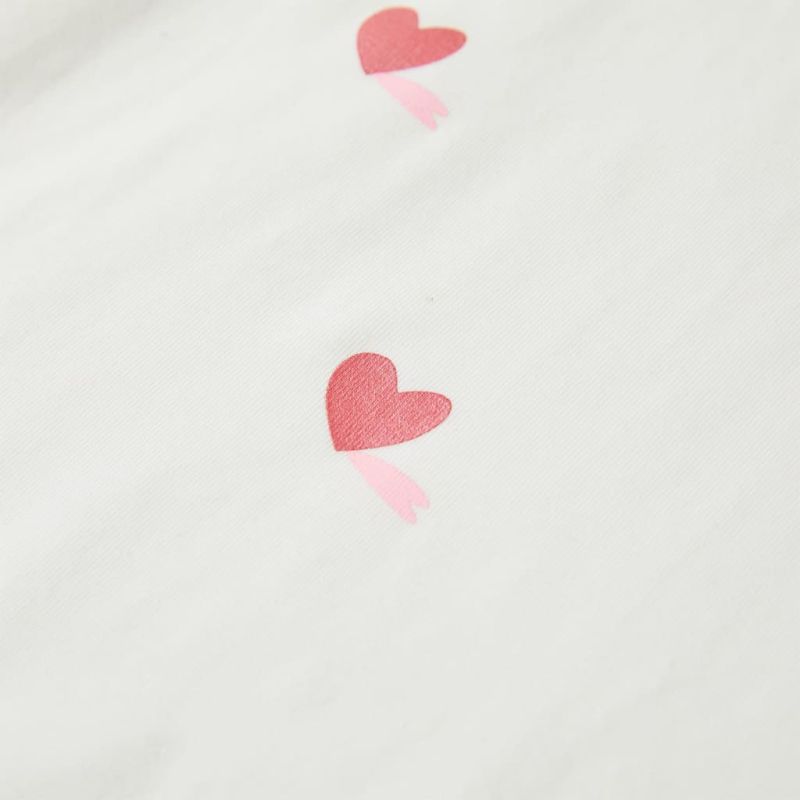 Нашата линия за детски дрехи е за достъпни, висококачествени и издръжливи ежедневни облекла за деца на възраст от 1,5 до 10 години. Нашата гама включва якета, пуловери, ризи и много други, с разнообразие от стилове, размери и цветове. Следвайки стандарта за високо качество на пазара, ние използваме висококачествени материали и усъвършенствани производствени техники. Тази детска тениска е с къс ръкав, обло деколте и прав модел. Детската тениска е със сърца отпред. Детската тениска е изработена от памук и еластан за мекота и комфорт на допир. Добре е да знаете: Таблицата с размери на снимката предоставя размери за деца на възраст от 1,5 до 10 години, като обхваща височината, гърдите, талията и ханша. Лесно можете да намерите подходящата за вашето дете.
