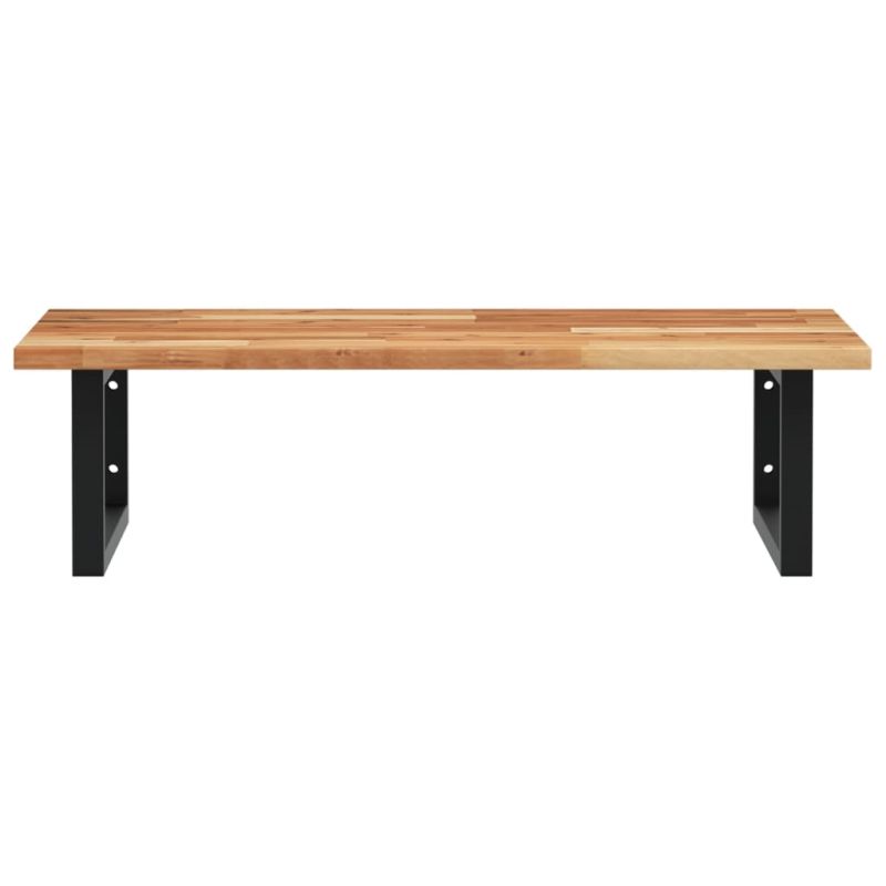Стенният рафт за мивка се прикрепя сигурно към стената, осигурявайки елегантно и спестяващо място решение за вашата баня. Здрав и дълготраен: Този рафт за мивка е комбиниран със стоманена конструкция и плот от масивна акациева дървесина, което го прави здрав, стабилен и дълготраен.Спестяване на място: Плаващият рафт за мивка има достатъчно място за съхранение на кремове и дребни предмети. Благодарение на правоъгълната форма можете да закачите кърпи или други неща на опората, за да спестите място.Лесен за използване: Плотът се доставя без дупки, за да позволи на мивката да се монтира отляво, отдясно или в центъра, в зависимост от изискванията на вашето помещение. Благодарение на предварително пробитите отвори в държача, той може лесно да се сглоби с плота и да се монтира на стената.Широки приложения: Благодарение на модерния си дизайн, осигурява допълнително пространство за различни видове бани. Добре е да се знае:Винтовете не са включени, можете да закупите винтовете отделно въз основа на информацията, предоставена по-долу.Прикрепване към стена: 2 бр дюбели M8 на скобаДървен плот: 2 бр M5x18 винта (T=2) или 2 бр M5x20 винта (T=2,5/4 см) на скоба
