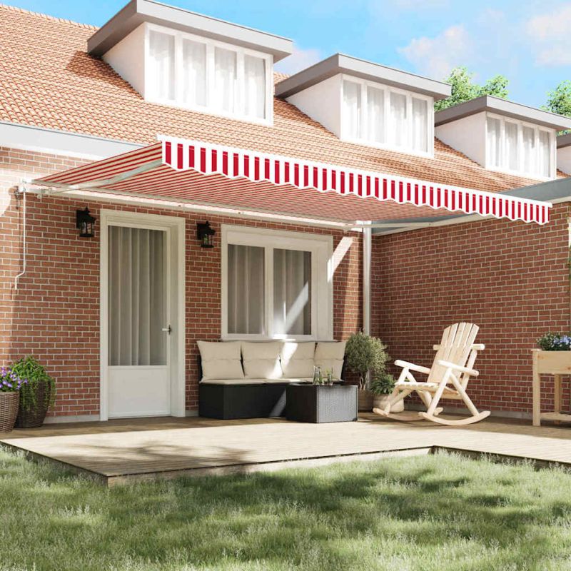 Начало Дом и градина Двор и градина Живот на открито Навеси за врати и прозорци Електрически разтегателен навес Червено и бяло 450 × 350 cm