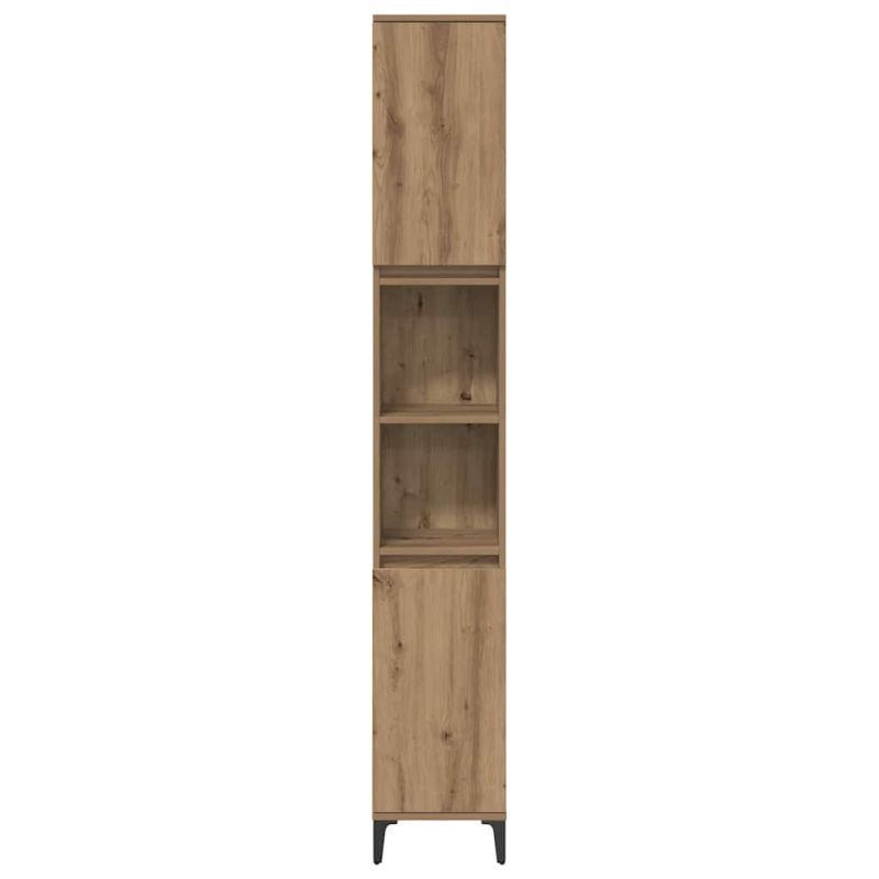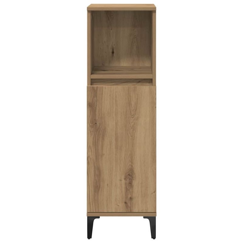 Този модерен комплект мебели за баня е идеален за всяко място, без усилия се вписва в декора. Текстурираната повърхност и матовото покритие дават изискан вид и същевременно предлагат практичност. Идеален за всеки, който иска да направи банята си по-стилна и функционална, комплектът предлага много място за съхранение, поддържайки всичко подредено. Перфектен е за градски апартаменти и предградийни домове, съчетаващ елегантност с полезност. Чистите линии и минималистичният дизайн подчертават простотата, правейки го универсален избор за всяка баня. Качествени материали Изработен от инженерна дървесина, комплектът мебели е проектиран да бъде издръжлив и надежден, осигурявайки дълготрайност, която издържа на банята. Характеристики на компонентите Включва врати с панти за лесен достъп до съхранявани предмети. Рафтовете предлагат практични решения за организиране на лични вещи, а квадратните метални крака дават стабилност. Функционален дизайн Правоъгълната форма позволява удобно поставяне в различни конфигурации, което я прави адаптивна за всякакви размери на банята. Идеален за спестяване на пространство Комплектът е страхотен за по-малки пространства, позволявайки ефективно организиране на ценности. Всеки шкаф побира множество предмети, поддържайки безпорядъка на минимум. Лесна поддръжка Закрепете мебелите за стената, за да избегнете преобръщане. За почистване просто използвайте влажна кърпа, за да поддържате комплекта в безупречен вид.