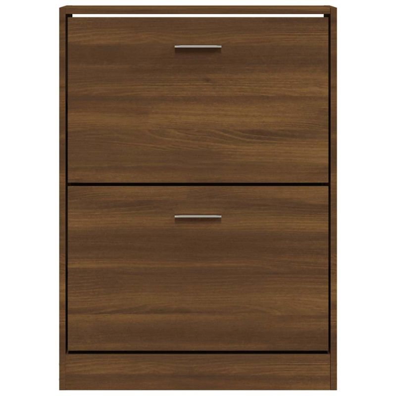 Този шкаф за обувки с модерен и стилен дизайн е отлична мебел за организирано съхранение на вашите обувки. Подходящ е за антре, фоайе, хол, спалня и други места, където желаете да го поставите. Издържлив материал: Инженерната дървесина е с изключително качество с гладка повърхност и също така се отличава със здравина, стабилност и устойчивост на влага.Достатъчно място за съхранение: Тази етажерка за обувки разполага с 2 чекмеджета, осигуряващи достатъчно място, където да държите обувките си подръка и добре подредени.Дизайн с падащо чекмедже: Със своя дизайн с падащо чекмедже този шкаф за обувки се отваря и затваря лесно. Забележка:Всеки продукт се доставя с ръководство за сглобяване в кашона за лесно сглобяване. Внимание:За да се предотврати преобръщане, този продукт трябва да се използва с предоставената приставка за стена
