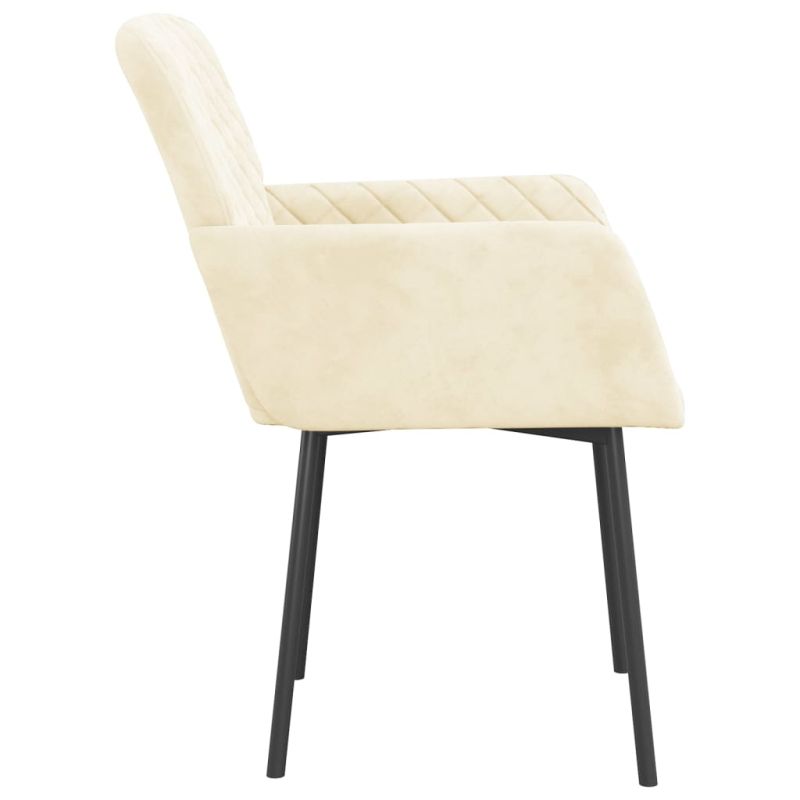 Тези трапезни столове съчетават семпъл стил и комфорт с елегантния си дизайн, което ще ги превърне в акцента на вашето жилищно пространство. Първокласен материал: Кадифето е мека и луксозна материя, която се отличава с гъста купчина от равномерно отрязани влакна с гладка повърхност. Кадифената тъкан се отличава с меко усещане, което я прави приятна на допир.Здрава и стабилна рамка: Рамката от метал и шперплат осигурява здравина и стабилност.Удобен трапезен стол: Подлакътникът и облегалката са с ергономичен дизайн и подплатени с пяна, осигурявайки максимален комфорт при седене. Максимално 110 кг на седалка. Съобразете се с риска от открит огън и други източници на силна топлина в близост до продукта.