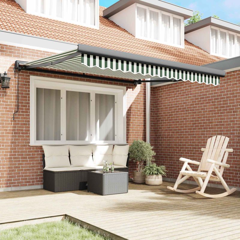 Начало Дом и градина Двор и градина Живот на открито Навеси за врати и прозорци Сенник Зелен и бял 350 x 250 x 165 см Полиестер и алуминий