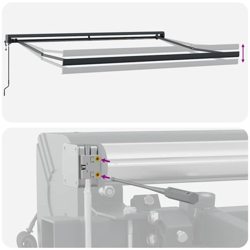 Нашият прибираем сенник е идеалното решение за сянка навън. Перфектен за градини и тераси, той съчетава простота и стил, с красив вид и минимални детайли. Лесно се адаптира през деня, осигурявайки комфорт на открито. Независимо дали правиш барбекю или просто искаш да се отпуснеш, този сенник ще ти донесе настроение и защита от UV лъчи. Здрав полиестер и алуминий: Изработен с полиестер и алуминий, този сенник е и здрав, и лек, осигурявайки стабилност дори при лошо време. UV-устойчивият материал предпазва от силните слънчеви лъчи, а алуминиевата рамка е устойчива на износване, така че ще го ползваш дълго време. Прибираеми функции: С умело проектирани прибираеми компоненти, сенникът предлага гъвкавост и лесно съхранение. Можеш да го прибираш и разпъваш в зависимост от времето, така ще създаваш комфорт, докато се наслаждаваш на слънцето или сянката. Телескопична технология: Лесно разширявай или прибирай сенника с напредналата телескопична функция. Механизмът осигурява плавни преходи между отворена и затворена позиция, закрепяйки се сигурно на място. Наслади се на оптимален комфорт при работа, позиционирайки го точно както ти харесва. Специално за открито: Проектиран за употреба на открито, този сенник е перфектен за тераси и градини, добавяйки функционалност и стил. С комбинация от прост дизайн и практични функции, той е идеален за различни нужди от сянка. Използвай го, за да се предпазиш удобно от горещото лято и след това. Лесни инструкции за грижа: Този сенник изисква минимално поддържане. Просто го почиствай с влажна кърпа и избягвай агресивни химикали. Когато времето стане лошо, просто го прибереш, за да му удължиш живота. Следвай тези прости стъпки и ще можеш да се радваш на него за много сезони. Този уред може да се използва от деца на възраст от 8 години и нагоре, както и от лица с намалени физически, сетивни или умствени способности или с липса на опит и познания, ако са получили надзор или инструкции относно използването на уреда по безопасен начин и разбират свързаните с него опасности. Децата не трябва да си играят с уреда. Децата не трябва да извършват почистване и поддръжка без надзор. Ако захранващият кабел е повреден, той трябва да бъде заменен от производителя, неговия сервизен представител или от лица с подобна квалификация, за да се избегне опасност. ПРЕДУПРЕЖДЕНИЕ: Важни инструкции за безопасност. За безопасността на хората е важно да се спазват тези инструкции. Запазете тези инструкции. ПРЕДУПРЕЖДЕНИЕ: Важни инструкции за безопасност. Спазвайте всички инструкции, тъй като неправилният монтаж може да доведе до тежки наранявания или дори смърт. Не позволявайте на деца да си играят с устройството за управление. Дръжте дистанционното управление далеч от деца. Не работете с тентата, когато в близост се извършва поддръжка, например почистване на прозорци. Движещите се части на задвижването трябва да бъдат монтирани на височина повече от 2,5 м над пода или друго ниво, което може да осигури достъп до тях. Преди да монтирате задвижването, отстранете всички ненужни кабели и изключете всяко оборудване, което не е необходимо за работа със захранване. Задвижващият елемент на превключвателя с предразположение трябва да бъде разположен в пряка видимост към задвижваната част, но далеч от движещи се части. Той трябва да се монтира на 