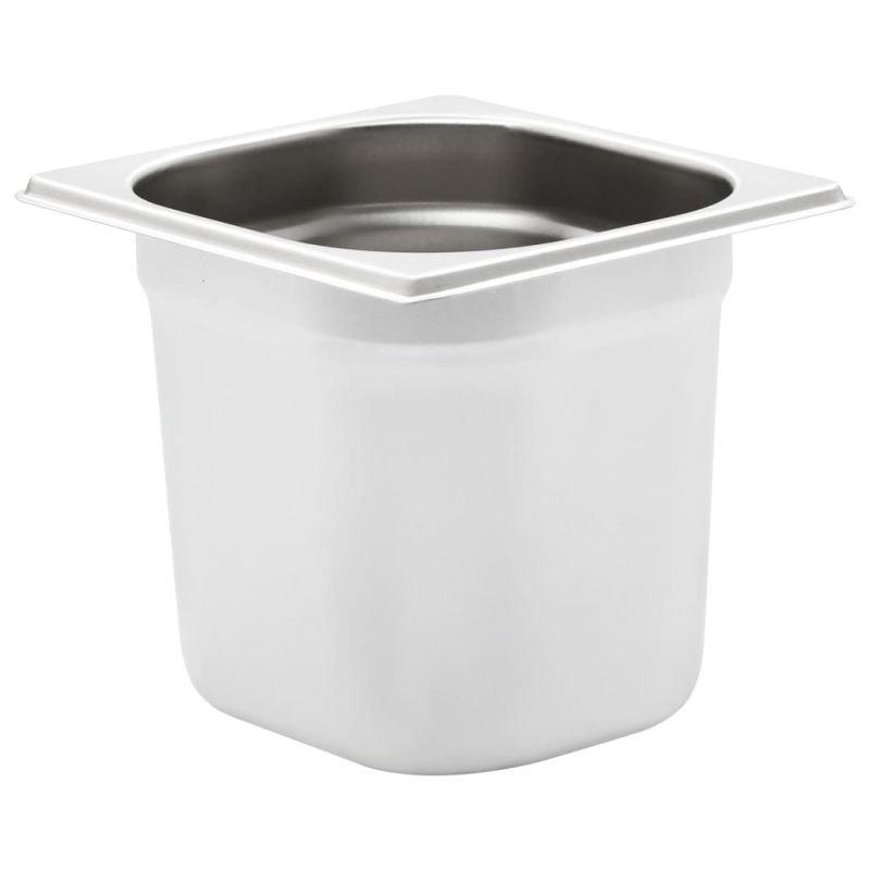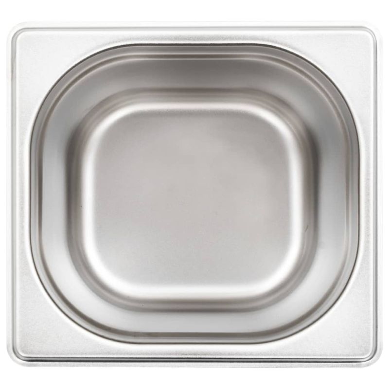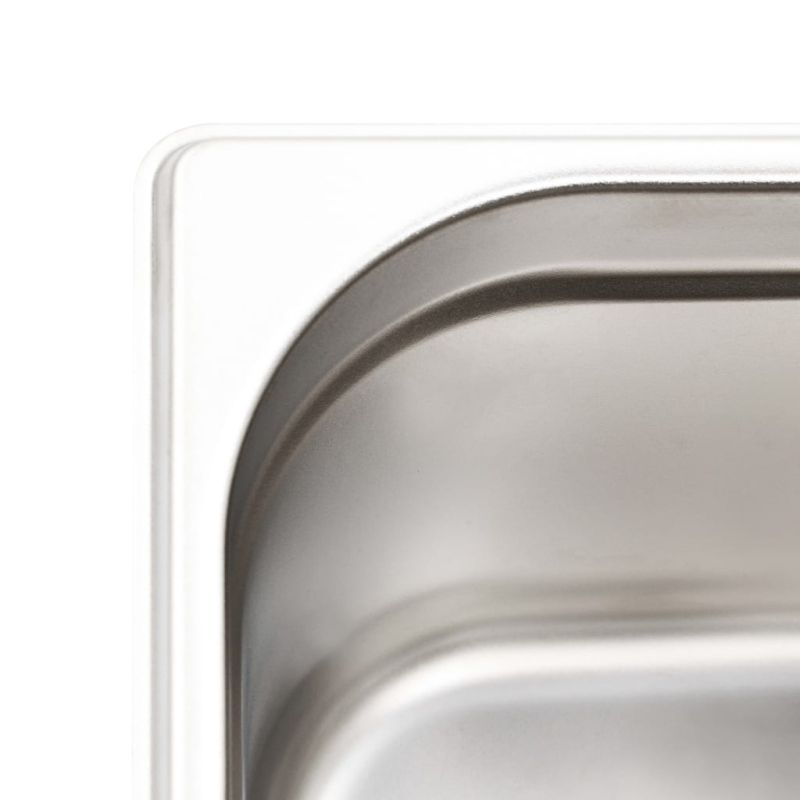 Тези стифиращи гастронорм контейнери ще бъдат чудесно допълнение към вашите кухненски съдове. Изработен от здрава неръждаема стомана, контейнерът за бен мари се отличава със здрава конструкция и се почиства лесно. Устойчивият материал предпазва тавите от драскотини и ги прави лесни за поддръжка. Тавата е с размери по стандарт гастронорм, което позволява универсална употреба и най-различни комбинации. Следователно тя ще се впише перфектно във всичките ви професионални кухненски шкафове и оборудване, като електрически сушилни, машини за миене на съдове и салатни барове. Съдовете могат да се подредят един в друга и да се приберат, за да пестят място, затова са много практични и идеални за използване в ресторанти, хотели, партита, както и у дома. Доставката включва 8 тави.