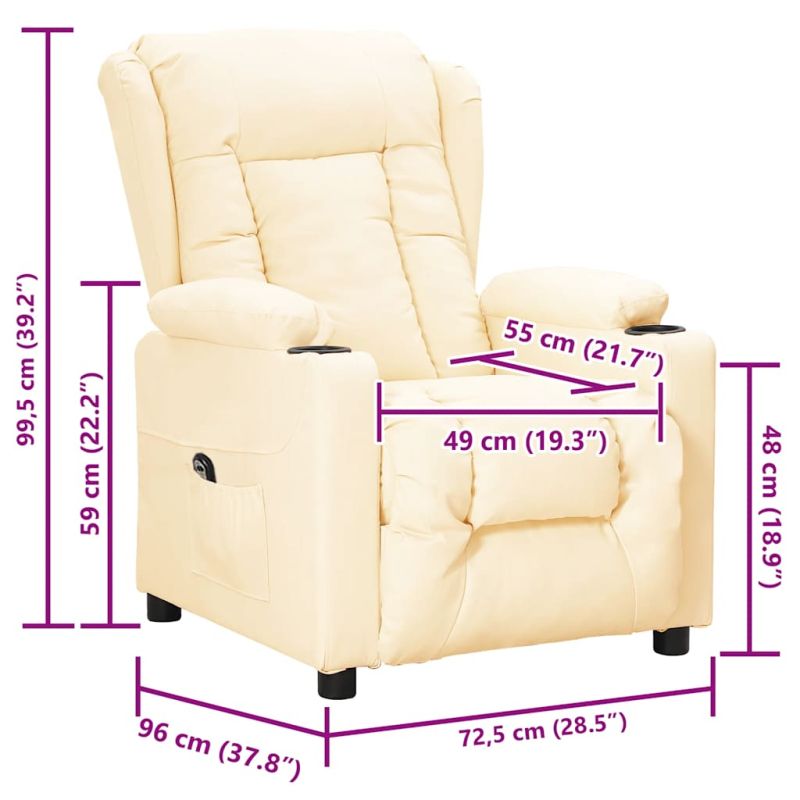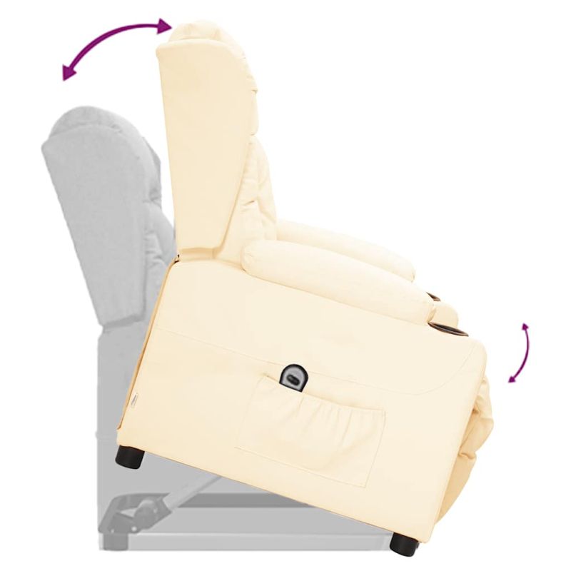 Облегнете се и се отпуснете в този изключително комфортен изправящ стол! Функция за ръчно накланяне: Накланящият се стол е специално проектиран с 3 позиции на наклон, така че да можете да регулирате ръчно облегалката и поставката за крака според вашето удобство.Функция за повдигане: Този стол реклайнер е оборудван с електрически двигател с функция за повдигане. Благодарение на ръчното дистанционно управление с 2 бутона и функцията, която избутва целия стол нагоре, можете лесно да се изправите, без да натоварвате гърба и коленете си.Удобно седене: Дебело подплатената седалка, облегалката и широките подлакътници, покрити с изкуствена кожа, осигуряват уютно и топло усещане, което ви кара да се чувствате като в прегръдка, докато седите. Изкуствената кожа е много издръжлив материал. Устойчива е на петна, което я прави лесна за почистване с влажна кърпа. Гладката повърхност също така придава луксозен вид и красотата на истинската кожа.Здрава и стабилна рамка: Рамката, изработена от дърво и метал, осигурява здрава структура и стабилност. Този накланящ се фотьойл е удобен и издръжлив. Този уред не е предназначен за използване от лица (включително деца) с намалени физически, сетивни или умствени способности или с недостатъчен опит и познания, освен ако не са получили надзор или инструкции за използването на уреда от лице, отговорно за тяхната безопасност. Този продукт не е играчка. Не позволявайте на деца да си играят с уреда.
