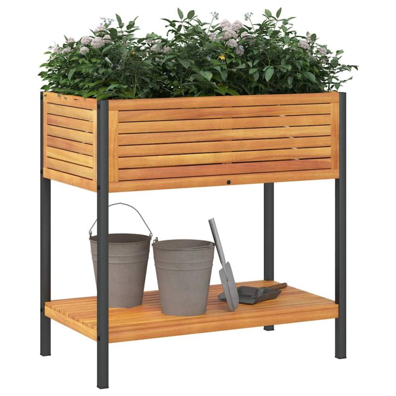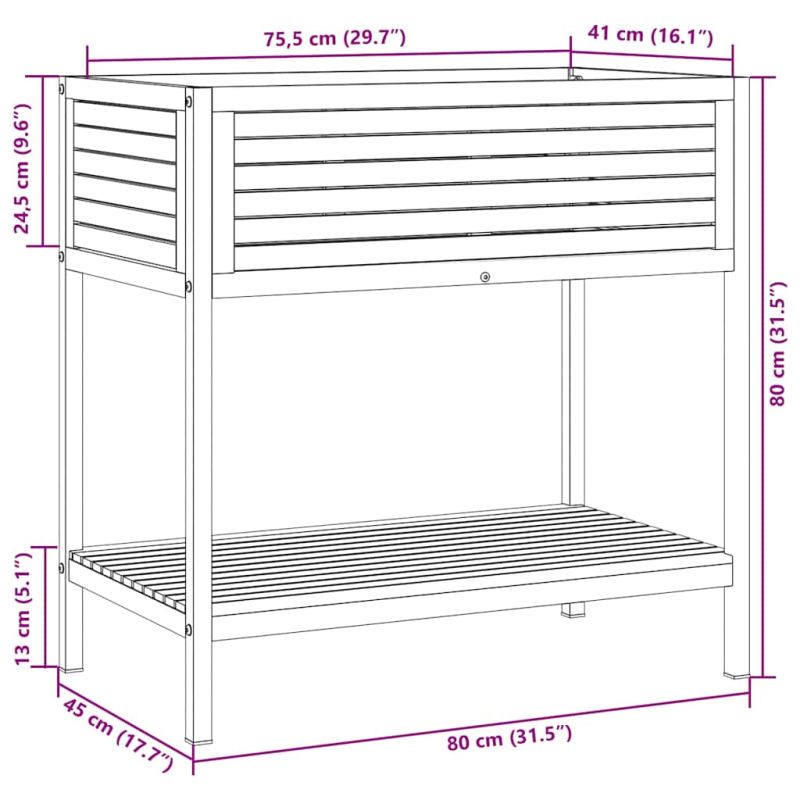 Градинска кашпа с рафт 80x45x80 см масивна акация и стомана