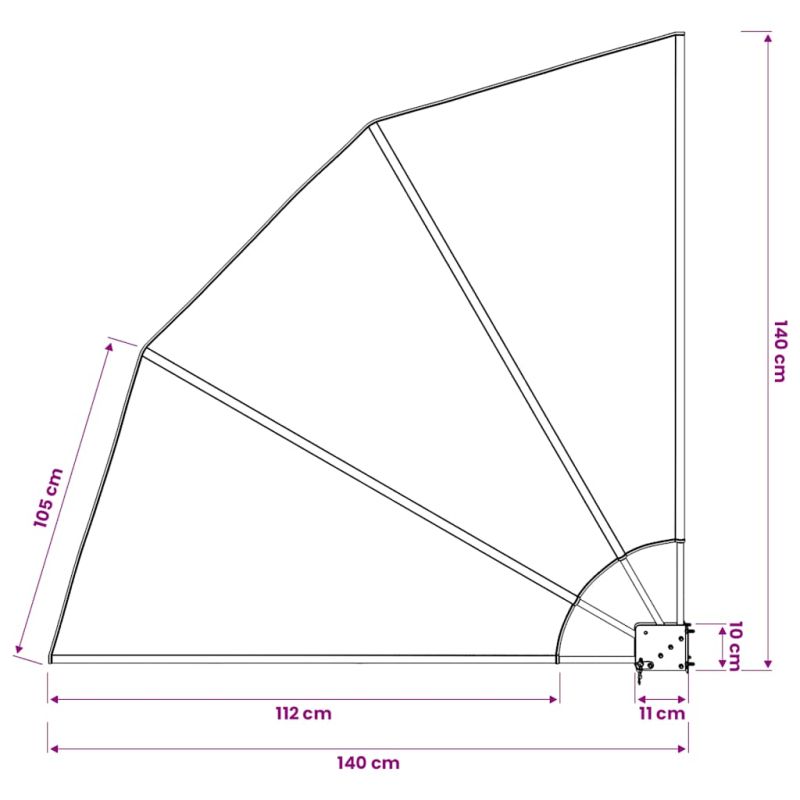 Тази сгъваема странична тента е идеална за ползване на терасата, балкона или в градината, за да ви осигури желаната сянка. Изработена от здрав полиестер, тази тента за балкон е устойчива на вода, замърсяване, UV лъчи и атмосферни влияния. Стабилната стоманена рамка с прахово покритие прави градинската тента здрава и много издръжлива. Благодарение на сгъваемия дизайн, този параван за балкон може да се сгъва лесно, когато не се използва, за да спести място. Конзолата за стена прави лесно монтирането на този сенник към стената. Този уникален сенник е не само изключително удобен, но и с впечатляващ вид и ще бъде идеалният избор за вашето външно пространство!
